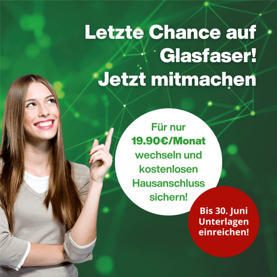 Je mehr Haushalte und Unternehmen jetzt dabei sind, desto schneller können alle von schnellem, stabilem Internet profitieren – ideal für Homeoffice, digitales Lernen und smarte Anwendungen.