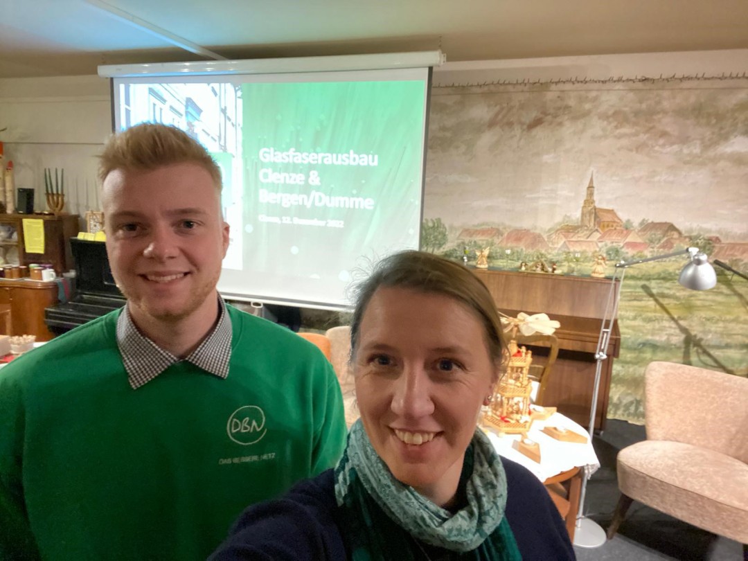 Auch die Bürgermeisterin der Gemeinde Landesbergen, Frau Heidrun Kuhlmann, sowie Samtgemeindebürgermeister Jens Beckmeyer waren vor Ort und unterstützten das Projekt aktiv. Beide riefen die Bürgerinnen und Bürger dazu auf, durch Vertragsabschlüsse zur Erreichung der erforderlichen 35 %-Quote beizutragen – damit der Ausbau Wirklichkeit werden kann.