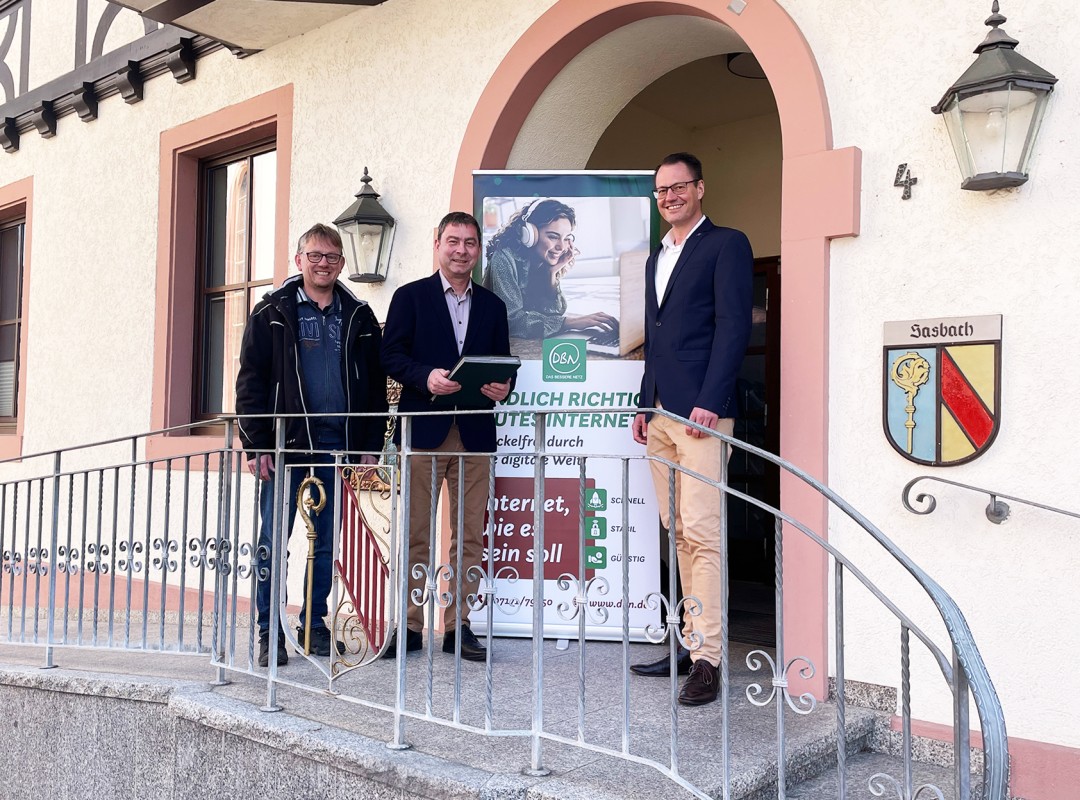 Wilfried Klenk, politischer Staatssekretär im Ministerium für Inneres, Digitalisierung und Migration Baden-Württemberg, überreichte Laufs Bürgermeister Oliver Rastetter anlässlich eines Vor-Ort-Termins in Achern einen Förderbescheid in Höhe von 1,6 Millionen Euro. Die Landesregierung will erreichen, dass in Baden-Württemberg im Jahr 2025 flächendeckend schnelles Internet zur Verfügung steht. „Dafür müssen wir die richtigen, nicht zuletzt finanziellen Rahmenbedingungen setzen“, betonte Klenk.