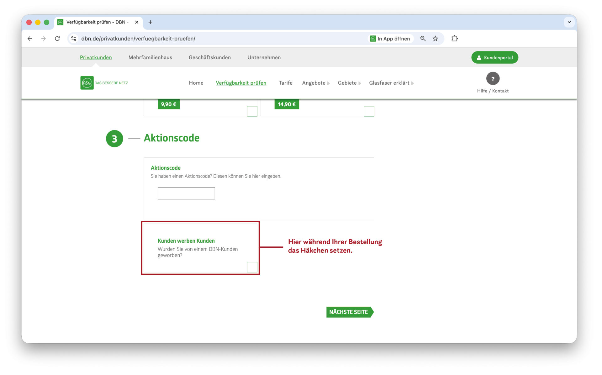 Damit die Prämie zugeordnet werden kann, muss der Geworbene im Bestellprozess das Kästchen im Feld „Kunden werben Kunden“ aktivieren und anschließend den Namen oder die Kundennummer des Empfehlers angeben. Ohne diese Angaben kann keine Prämie ausgezahlt werden.
